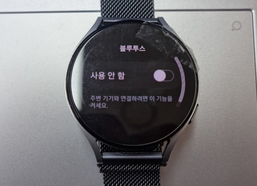 사용 중 표시가 있는 블루투스를 누릅니다.