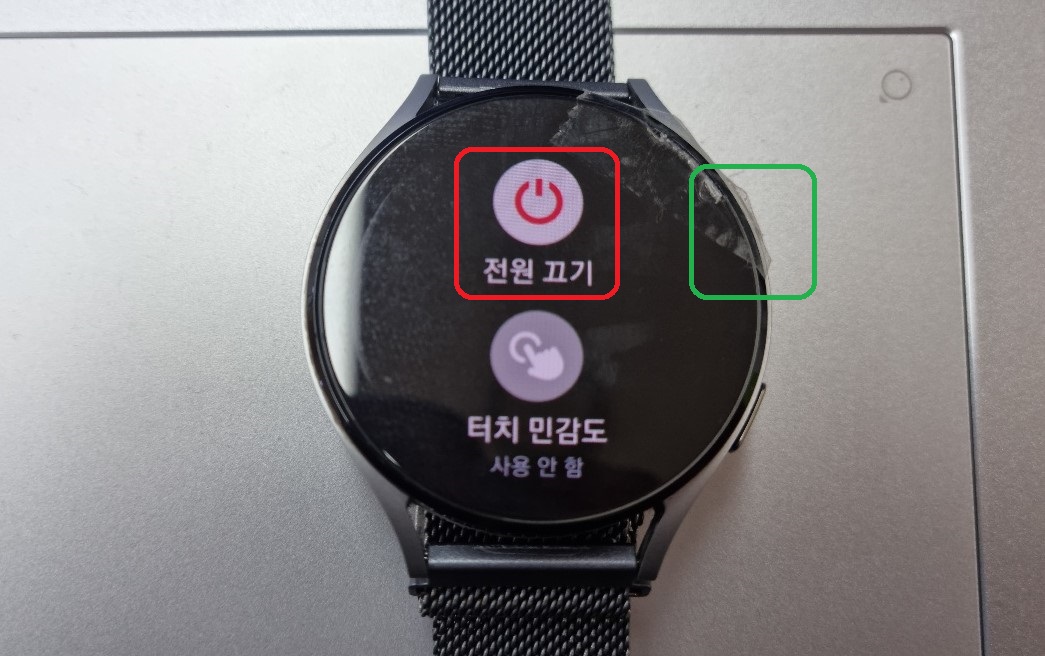 액정에 나온 전원 끄기를 눌러 워치를 종료합니다.